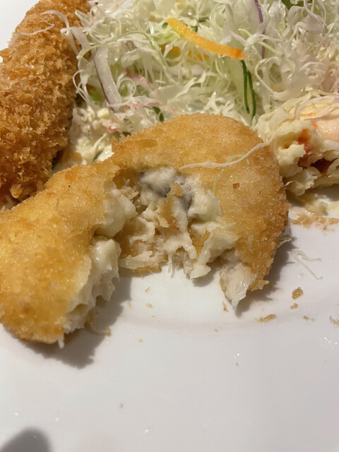 で、元々の趣旨である #クリームコロッケ は口の中でハラハラと溶ける雪のようなクリームの味わいがたまりません。