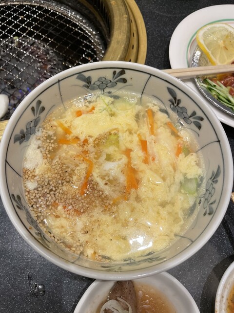 最後は #レバー の癖のある味わいに #たまごスープ に #わかめスープ の優しい味わいで癒され、大満足な状態でお店を後にするのでした。