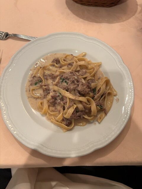 頼んだのはサービスランチで手打ち麺 #タリアテッレ 本日の内容は仔羊のクリームソース とのことです。
