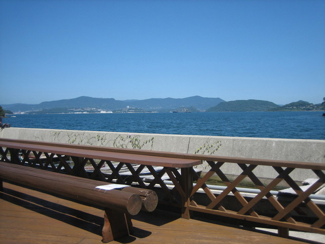 今日はカウンター席でしたが、目の前にギンギンの広がる青い海原と遠くには佐世保港が見え、