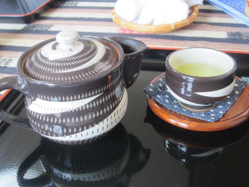 先ずは、小石原焼きの急須で注いだ日本茶を寛ぎながら料理を待ちます。