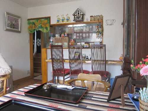 自宅を改装して、畳の部屋に座卓が3卓、板の間に椅子テーブル2卓とカウンター席の2部屋です。