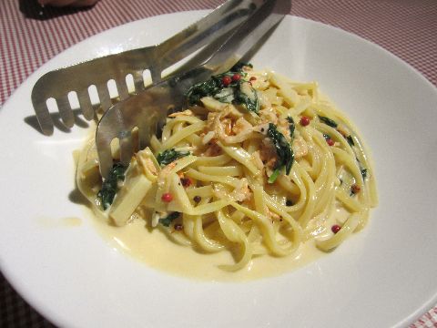 Rookie人気No.1のパスタです、丸い麺と平麺の2種類を注文する。