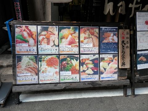 玉子焼き、マグロ、寿司、海鮮丼のお店を、うろうろと彷徨った。