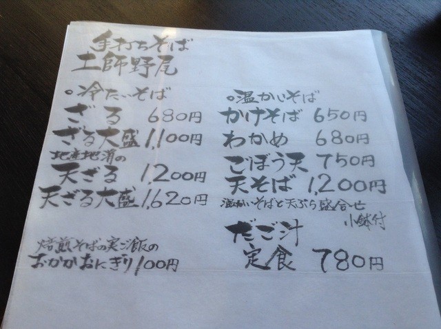 メニューの「冷たいそば」は、ざると天ざるが各々普通盛りと大盛りの4種類のみ。