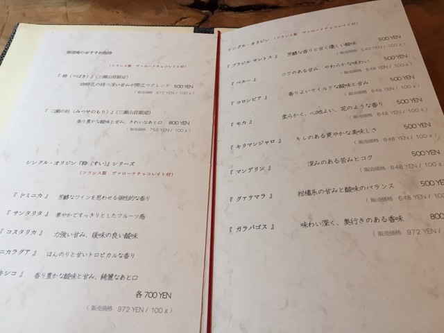 珈琲メニュー