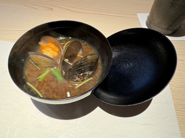 ・とうもろこしの冷静茶碗蒸し、笛吹鯛と石鯛のおつくり、ぶり、ボウズギンポの西京焼き、ひらめ、剣先いか、マグロの漬け、たこ、ホタテ、沖シジミの赤だし、煮あなご、しんこ巻をいただきました