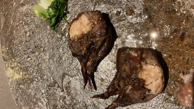メインのお肉はこの日は鳩。相変わらずの火入れ。基本的に紹興酒が一番なのですが、このお肉のお皿だけは赤ワインをいただきます。