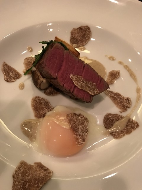 そして今回は「高坂鶏」にフューチャーしており、ロッシーニの構成で黒毛和牛の上に高坂鶏の白レバーをのせてフォアグラの代わりに使うというなんとも美味しい料理には驚嘆。