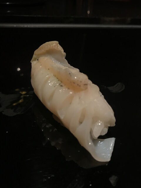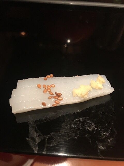 一番印象に残ったのが、イカの握りの上に乗っているゴマ。