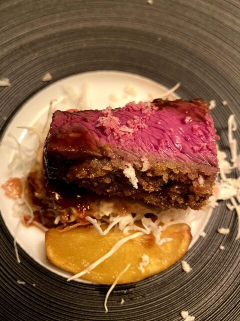 肉料理は、北海道の地ビーフを使ったカツレツとなんかすんげー肉の塊(笑)。今までで最高の肉の旨味を口いっぱいに堪能させてもらう。