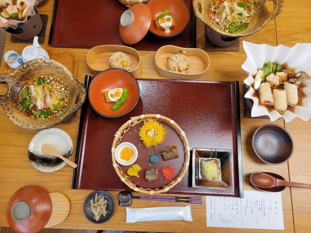秋田県の名産であるきりたんぽ鍋、比内地鶏、いぶりがっこを中心に、栗や梨など季節の品で飾られた懐石調理でした。山中の一軒宿であることを考えると十分に満足行くレベルです。