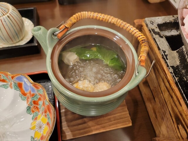 ・松茸の土瓶蒸し 松茸、銀杏、鶏肉、海老、三つ葉