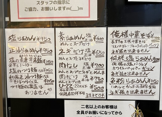 手書きメニューもあり、塩も青唐辛子入りもありました。