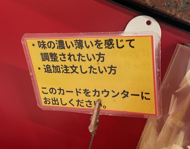 味が濃い、薄い時、卓上のカード出すと調整してくれるらしい。