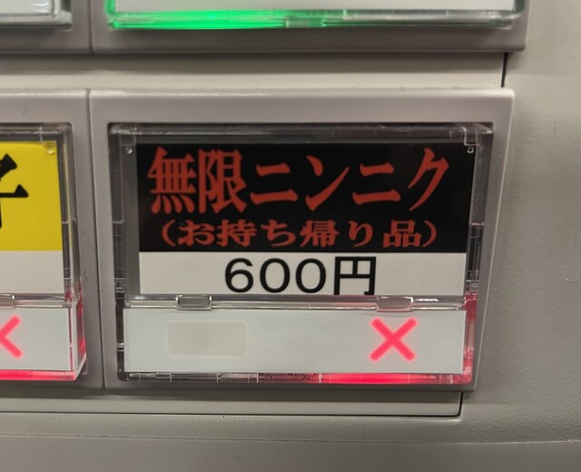 ラーメンより先に、持ち帰り無限ニンニクが本日売り切れになっていないか確認したところ・・・