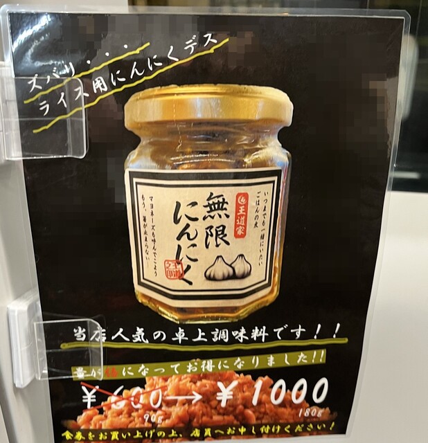 前回買った、持ち帰り用の無限ニンニクがなくなったので。