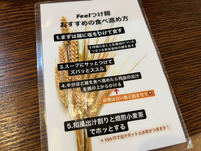 2種の麺は、ひとつはラーメン流用っぽい細ストレート麺ですが、水シメにより、コシが増幅されたことと、もうひとつは蕎麦っぽい褐色の味の濃い細麺。この構成は「飯田商店」と同じですが、あっちはFEELより麺が(もうちょっと)太くて、麺の味が濃い気がします。