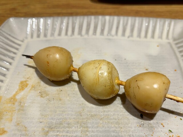 「 うずら」は1串3個で上下の鶉はタレを染込ませてあり、中央はプレーンで2色味わえる!!