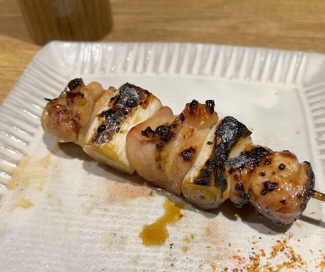 「ねぎま」のジューシーな鶏と葱の甘味、タレのと炭の香ばしさが見事な一体感はもう一本お代わりしたくなる!