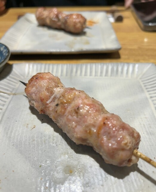 一般的な焼鳥屋の「つくね」とは全くの別物でジューシーさの中にコリコリした木の実?の食感が癖になる逸品!
