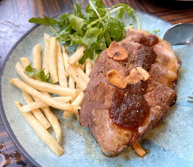 ジンジャーソースで和との融合でガーリックチップのアクセントが肉の甘さを引き立てる!
