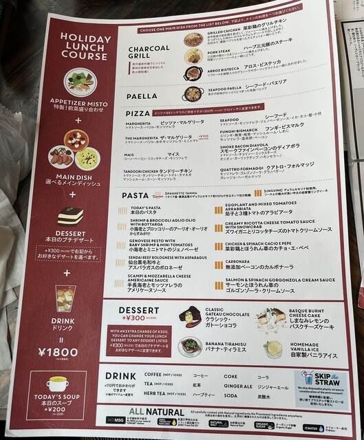メニューはHoliday Lunch Course(ホリデーランチコース)