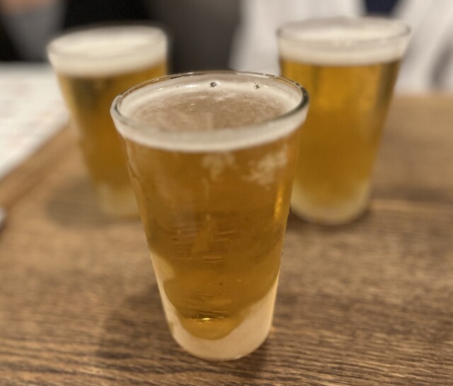 まずは、この店オリジナルのIWAI LAGERのドラフトビールで乾杯♪