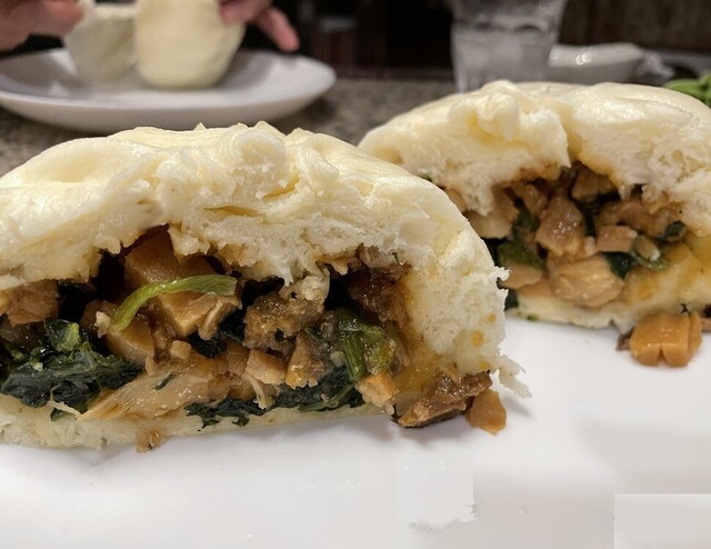 こちらの(肉包/ロウパオ)は一般的な肉まんとは全く異なり、椎茸や竹の子・青菜などの野菜がたっぷりの「五目肉まん」!