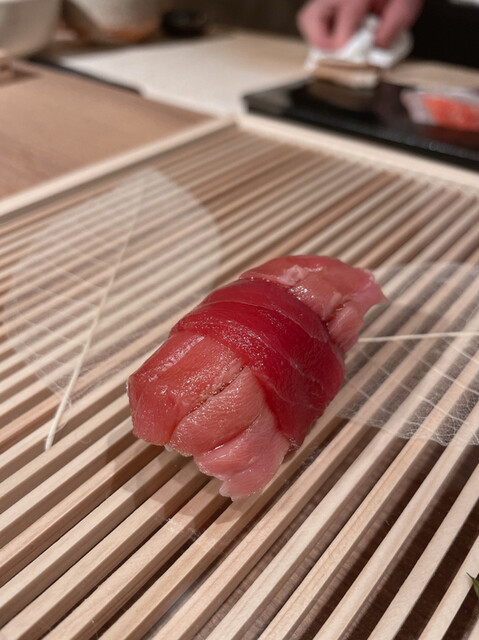 ◎マグロのミルフィーユ 中トロ、赤み、中トロと重ねて握っています。贅沢な逸品。