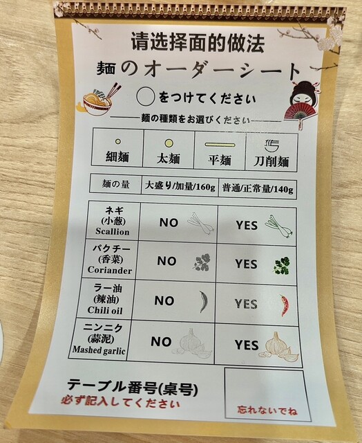 生ビールが提供されたタイミングでオーダーシートを手渡し、その後さほど待つこともなく”蘭州牛肉麺”が提供されました。