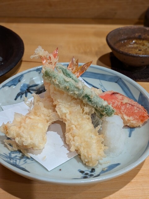 薄めのカリッとした衣で素材の味をしっかり感じられ、さっぱりめの天つゆでも塩でも美味しい