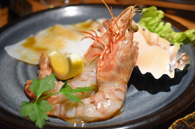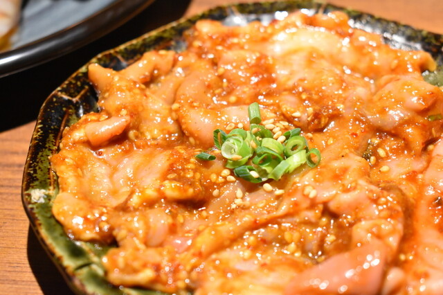 いただいたのはオススメの「黒毛和牛霜降り上かるび」1,468円をはじめ、「国産牛シャトーブリアン」2,894円、「シーフードセット」1,490円、「和牛ツラミ塩焼き」842円、「ガツミノ・タレ」529円等々。最高部位のヒレ肉150g「国産牛シャトーブリアン」は言うに及ばず、刺身用なのでレアでも食べることができる北海道産の帆立、ヤリイカ、車エビ有頭等がセットになった「シーフードセット」や、カリコリと歯ごたえが良く内蔵系の臭みもない「ガツミノ・タレ」など、予想をはるかに超える美味しい焼肉に感動モノです。