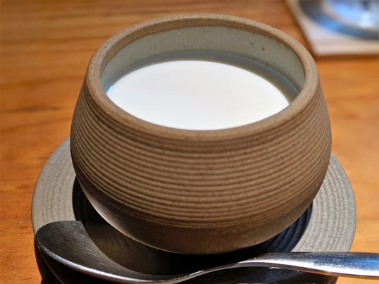 次は「スッポンのスープ」。豆板醤や甜面醤などに1週間漬けた後3週間干した豚肉と、干し貝柱や野菜などから2日間かけて作った中華のコンソメをベースに、じっくり時間をかけて作ったという渾身のスープです。素材の持ち味が最大限引き出されたような優しく深い味わいは見事ですね。
