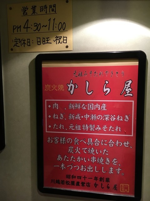 いやぁ。元祖みそだれやきとりかしら屋。なん店舗か経営されてるみたいだけど。かなり