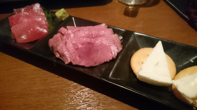 店長のおすすめ、おつまみ三点盛りが気になったので追加注文することに!!