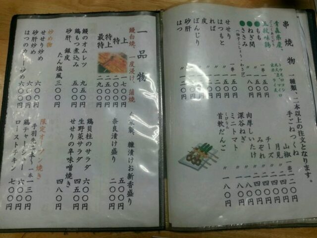 酔っ払い易さ度: 70% ※焼き鳥がおいしくお酒が進みます。店員なつき度: 50% ※親切に対応して下さいます。愚痴り易さ度: 70% ※仕切りがあるので話しやすいです。メニューの充実度: 80% ※鶏、鰻がメインです。ドリンクの充実度: 70% ※日本酒が充実しています。お一人さま指数: 10% ※いませんでした。賑やかです。モクモク指数: 0% ※完全禁煙です。いた人のジャンル ※30~50代の男女隣人との密着度: 150㎝ ※仕切りがあるので気になりません。また行く度: 行く!!行く!!行く!!行く!!※研究会独自の指標の為酔っ払ったその場の感想でして…