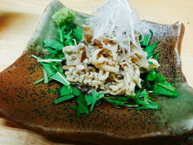 鰻丼のためのお腹を残しておくために軽めの鳥皮ポン酢にしました。
