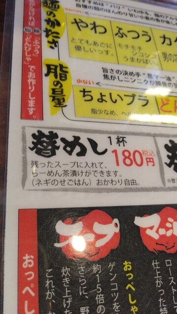 おっぺしゃん「おっぺしゃんラーメン+替えめし大盛2杯」豚骨の日600円+平日昼80円
