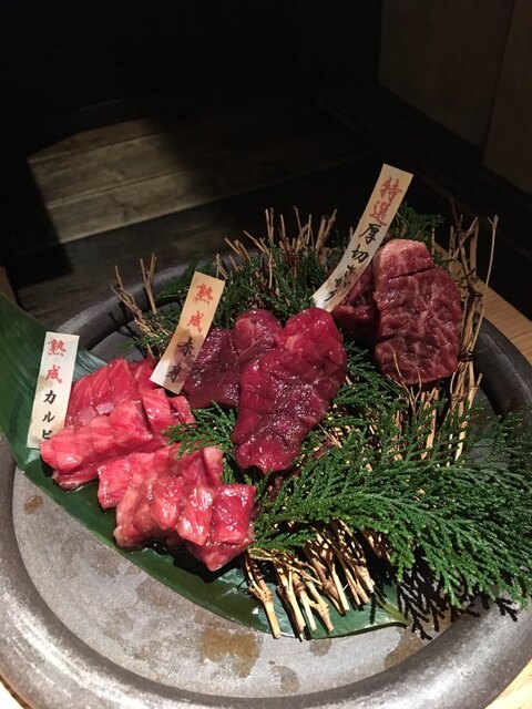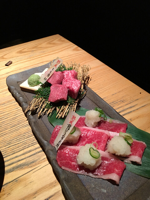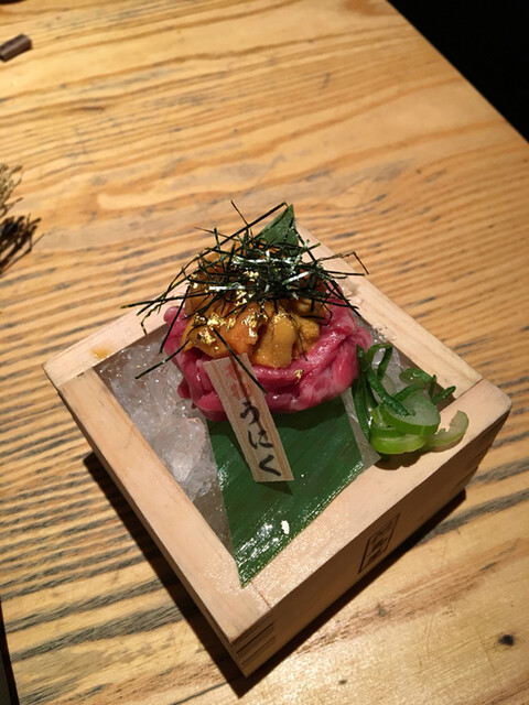 赤身+塩タン+うにく[ユッケに雲丹がのってます[]