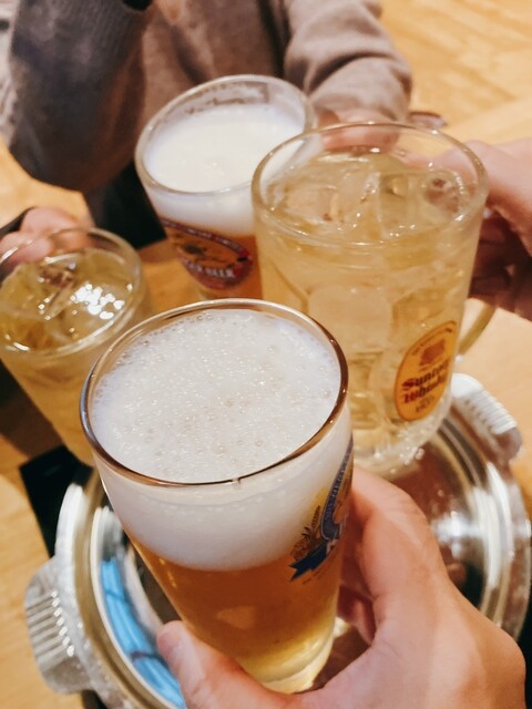 ハイボール、生ビールにて乾杯!