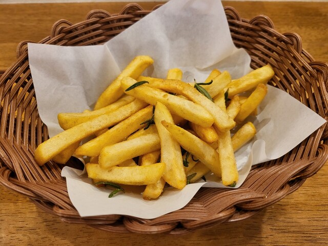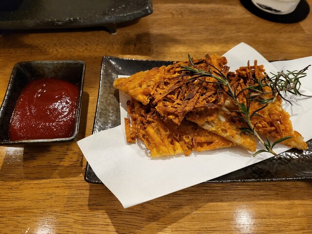 フライドポテトは定番で安心の味、トッポギ揚げは初めてでしたが、外のサクサク感と中のもっちり感の対比が面白い。