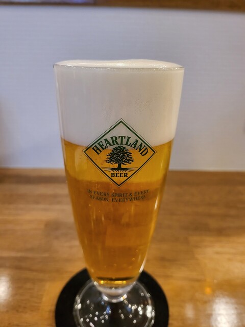 まずは生ビールはハートランドで注文。バイトの方に店長さんが丁寧に教えながら注いでいました。
