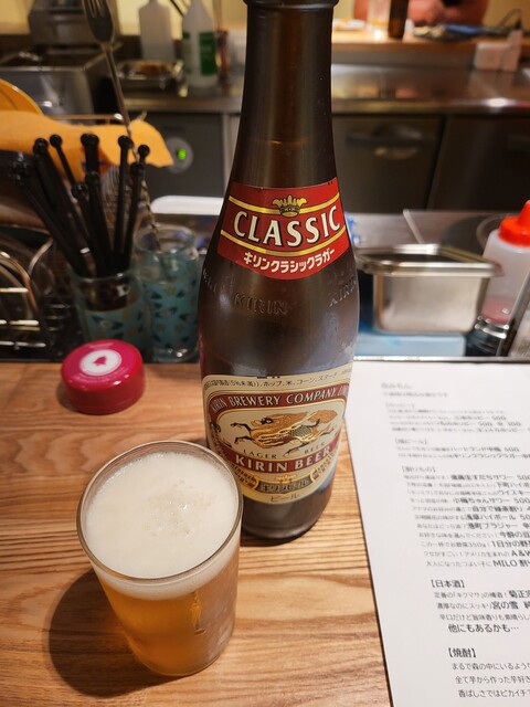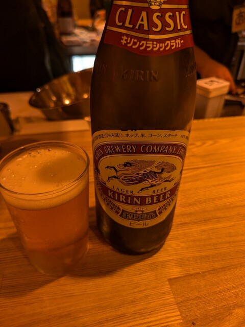 生ビールはないので瓶ビール(クラシックラガー600円)でスタート。