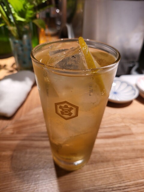 かぼす酒をソーダ割で。呑みやすすぎて危険!!