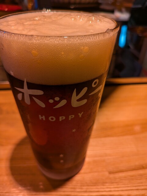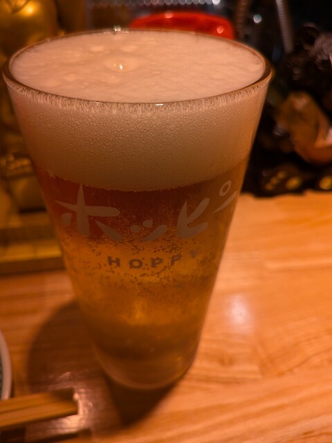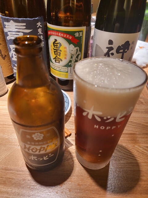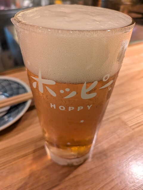 ワンドリンクは定番の三冷ホッピーの白にしました