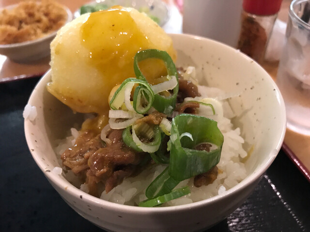先ず、甘辛く炊かれたお肉…コレが旨いんよなぁ。キムチと合わしても抜群だし、生卵絡めようならすき焼みたいな感じでたまらん♪