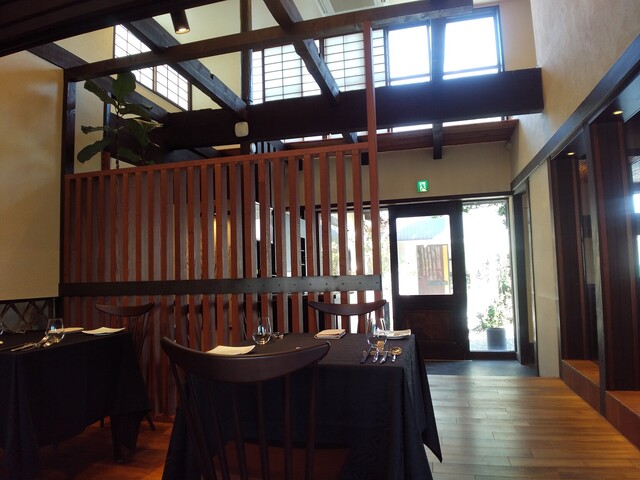 半数くらいの席が埋まる店内は古民家をリノベした開放的な空間で、テーブルの上のお料理と相まってとても豊かな気分で食事できました。
