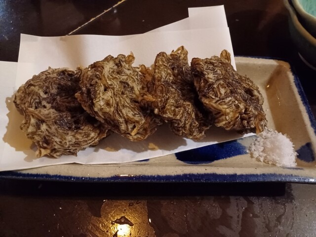 このモズク天ぷらは、他店とは一線を画します。通常だと、モズク70%・メリケン粉30%という感じですが、ここのモズク天ぷらは、モズク95%・メリケン粉5%という感じです。ほぼ全編モズクなのです。なので、モズクの味をしっかりと感じることができます。モズクのほんのりとした塩味と甘みは、泡盛にぴったりです。
