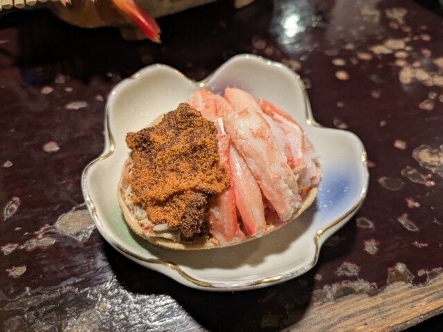 美味いです。てか、これは完全に日本酒のアテですねw。私的には、「カニ味噌」というメニューがあり、それだと雄のズワイの身とたっぷりのカニ味噌がついてきていたので、そっちのほうが好みかもしれない、と思いました。でも鮮度が高くて美味しかったです。